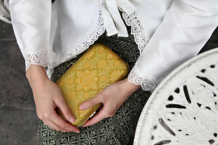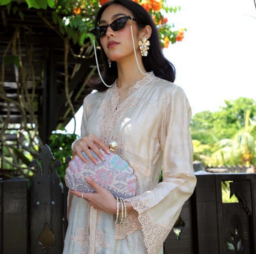 Our handmade Songket clutch is a timeless piece of artistry, meticulously woven by skilled artisans using traditional techniques. Each clutch showcases intricate patterns that celebrate the rich cultural heritage of Songket weaving. Crafted with eco-friendly materials, it embodies both elegance and sustainability. Perfect for any occasion, this clutch is a statement of style and heritage.